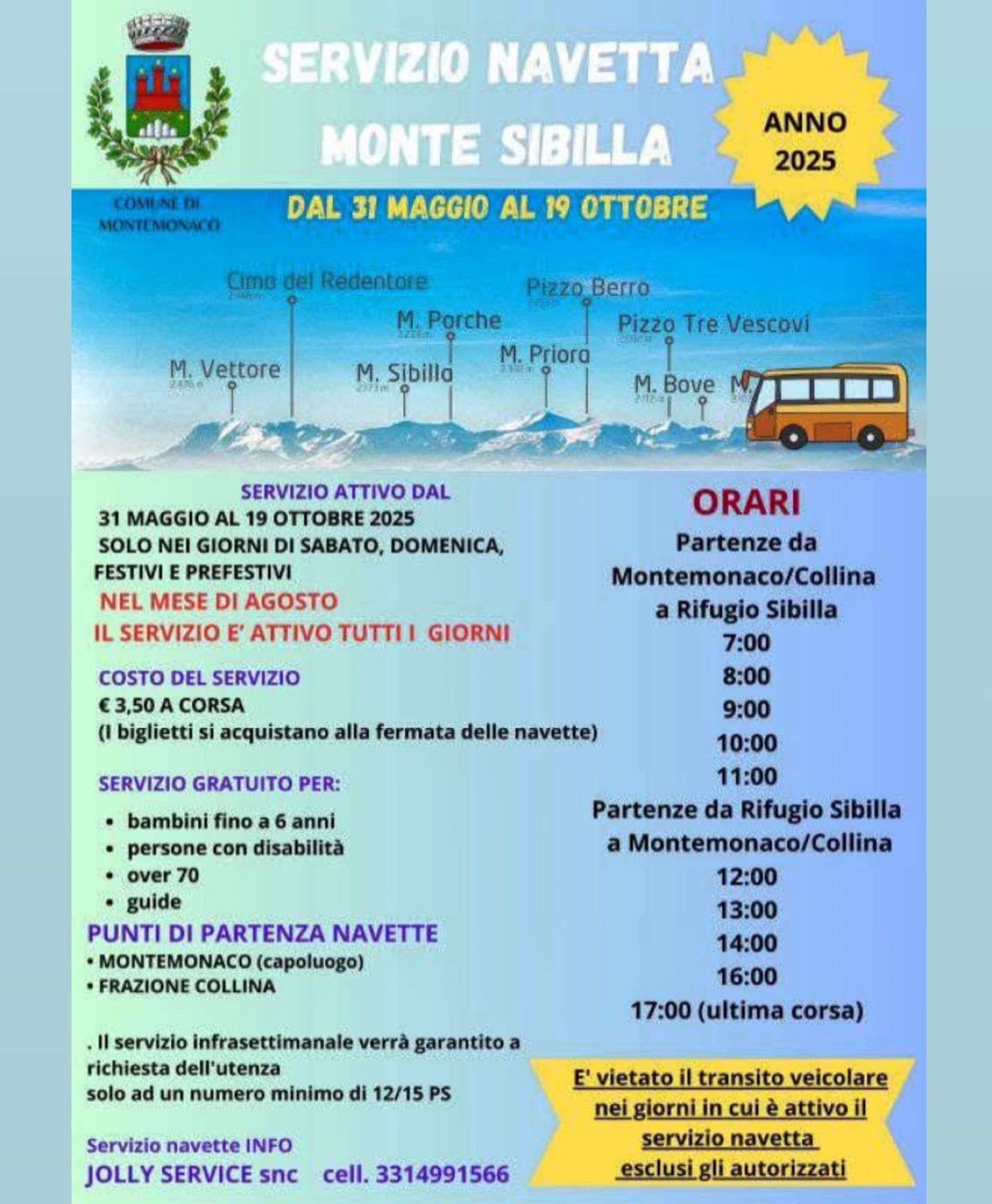 Ore 7.30 a Montemonaco, c/o parcheggio del bus navetta obbligatorio per Rifugio Sibilla (costo del servizio 3,50 euro a corsa - gratuito per over 70) Qui gli orari del servizio navetta per Monte Sibilla Partenza della navetta ore 8.00, si raccomanda la massima puntualità! |