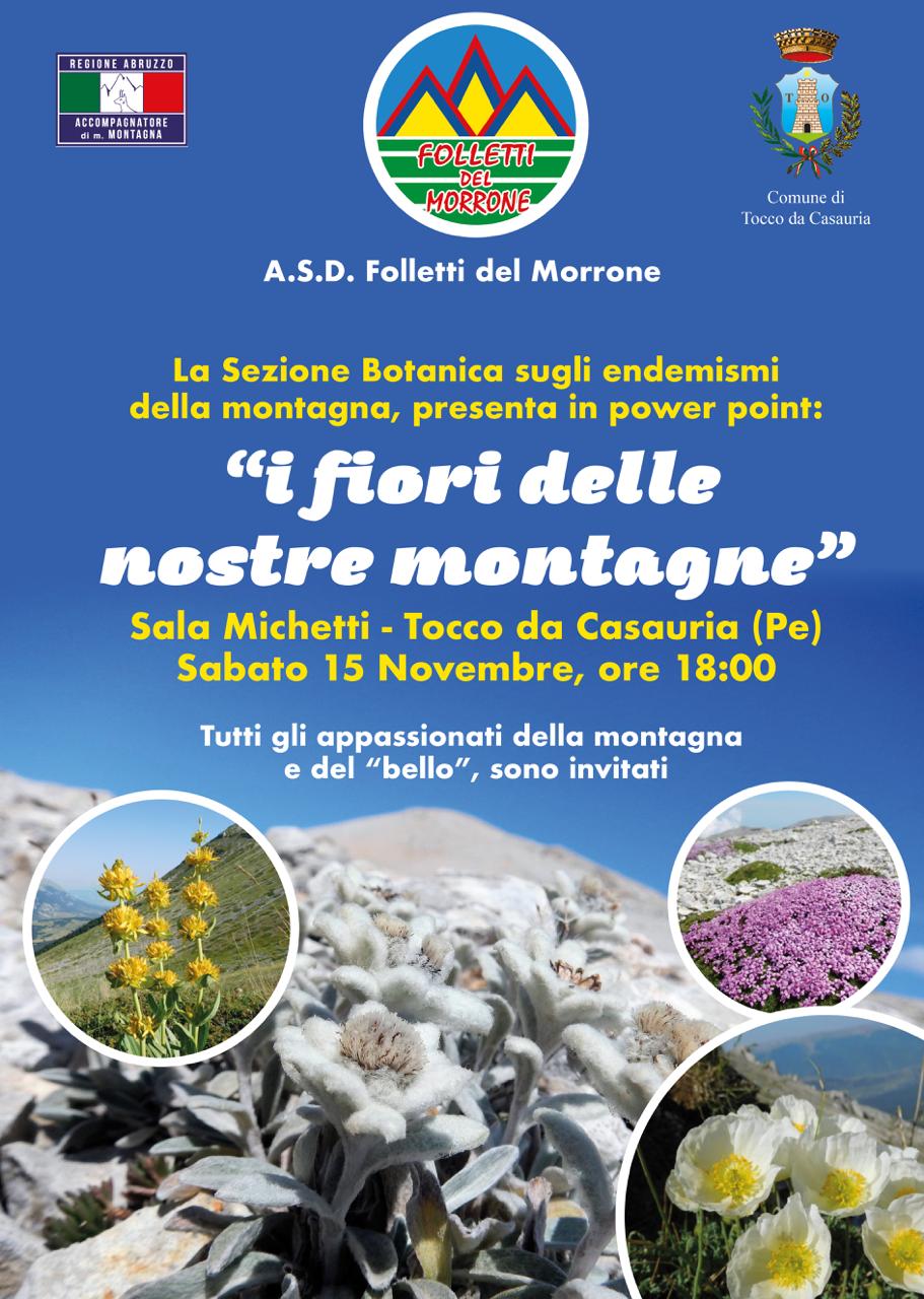 E’ in programma, Sabato 15 novembre, presso la sala Michetti del Comune di Tocco da Casauria, una serata dedicata alla conoscenza dei fiori delle nostre montagne.